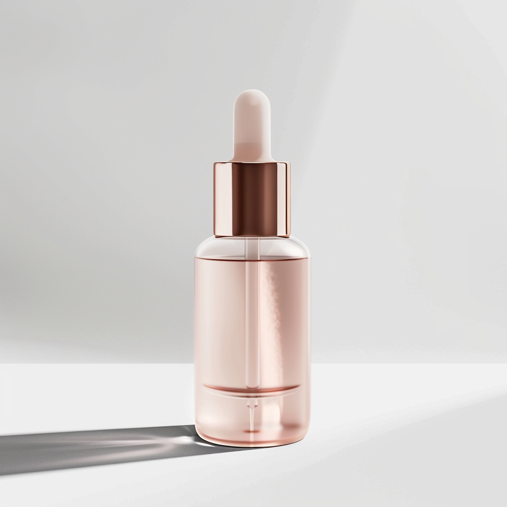 fancy luxury skincare serum bottle, product photography style, white background, studio lighting, medium shot, centered composition, professinal and clean.