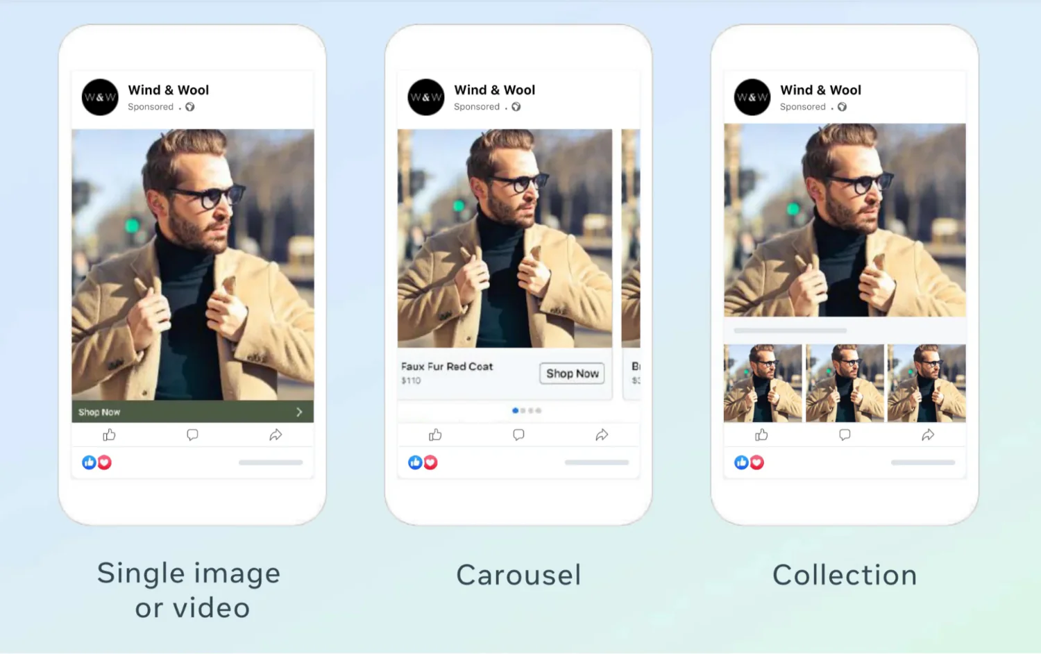 - 이미지, 캐러셀(슬라이드), 영상 등 다른 광고와 동일한 형식을 갖출 수 있음