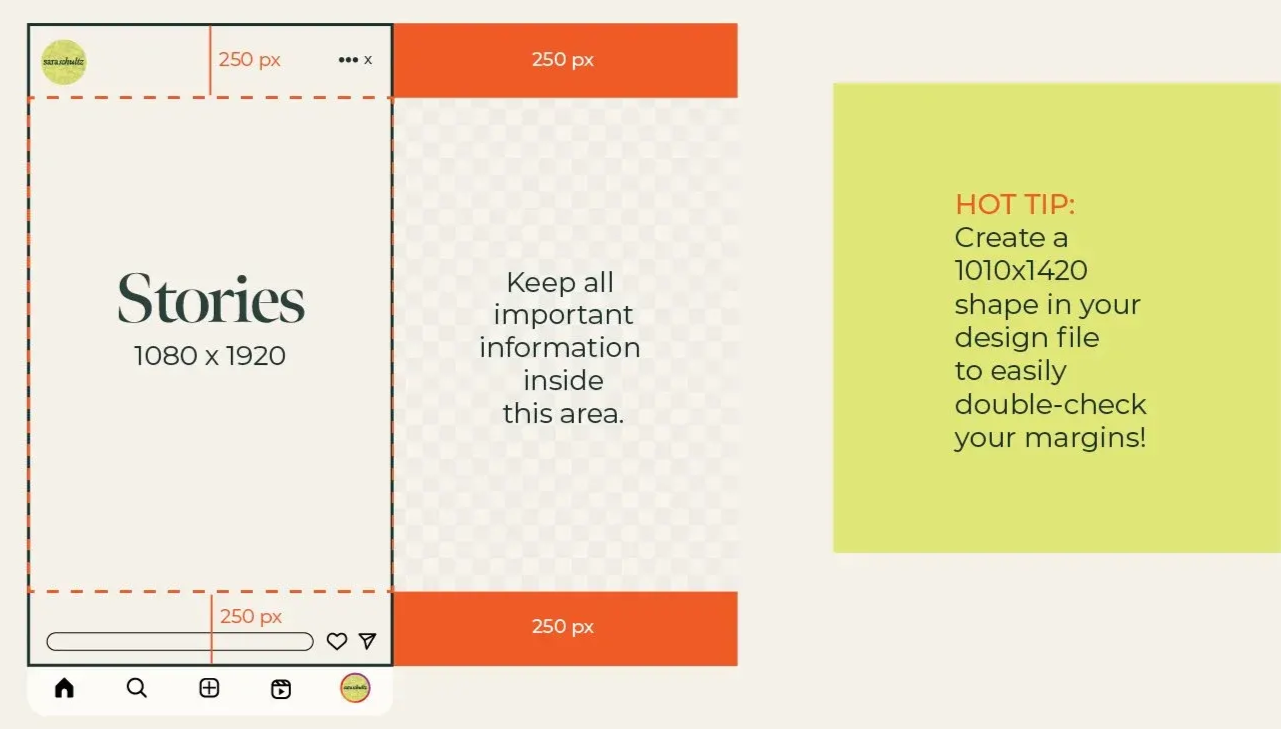 하나의 게시물이 4:5, 3:4로 노출될 수 있기 때문에, 디자인 작업 시 1014x1080 픽셀의 안전 영역을 고려하여 제작하는 것이 가장 효과적입니다.